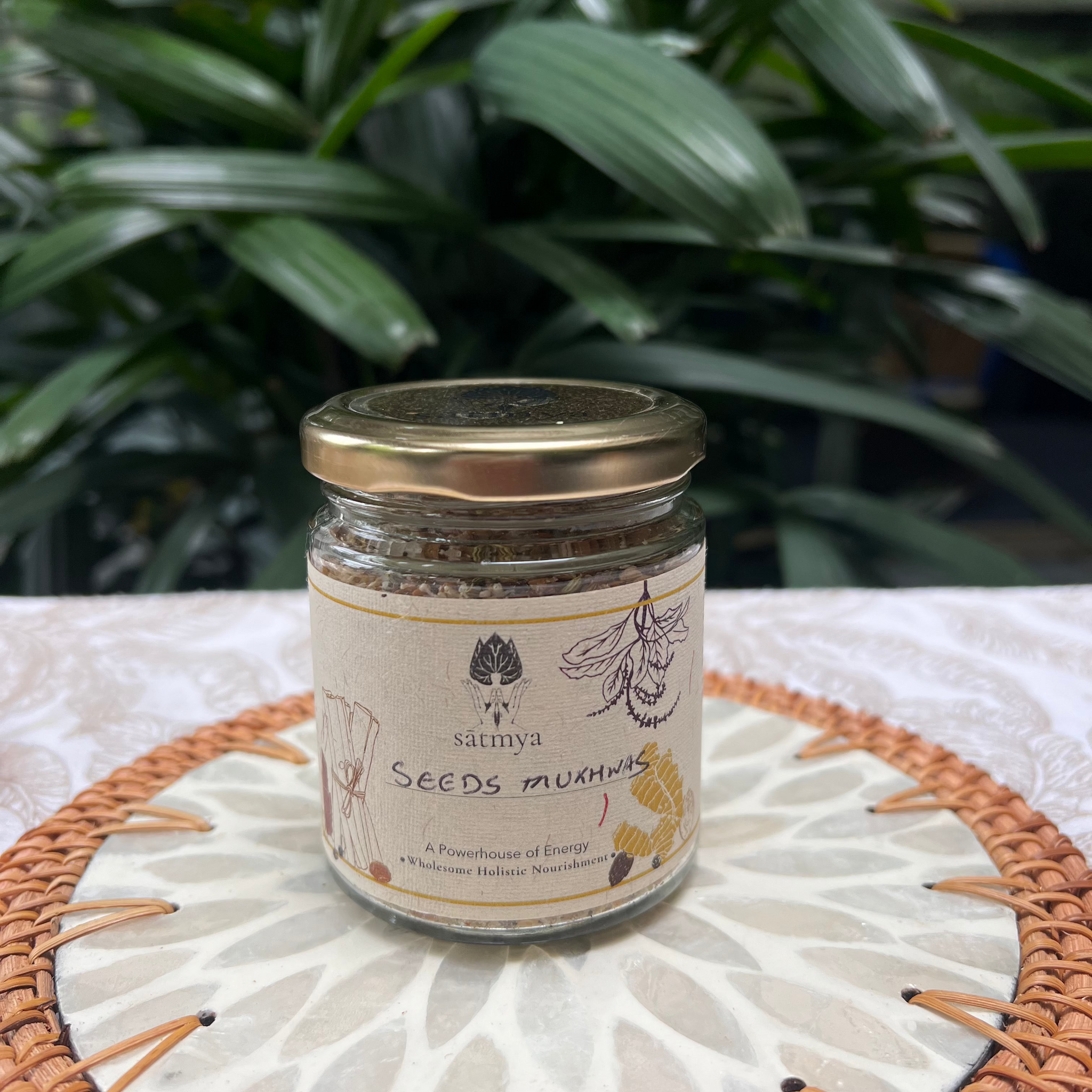 Sātmya Seeds Mukhwas is freshly made with medley of whole roasted seeds and digestive spices which are not only excellent for your gut health but also delicious to taste.
