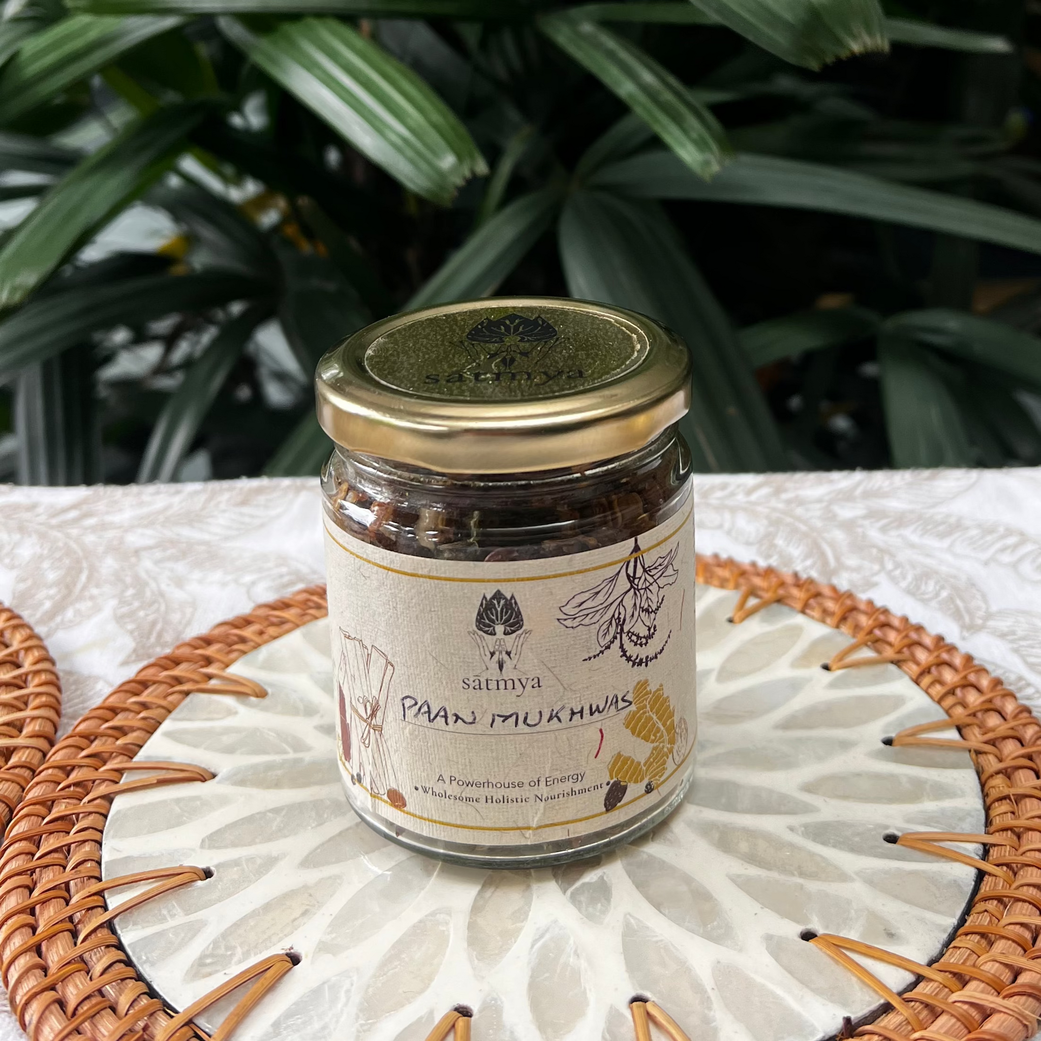 Sātmya Paan Gulkand Mukhwas is freshly made with our farm grown Paan | Beetel leaves, farm grown rose leaves, Satmya Gulkand, whole ingredients and digestive spices which are not only excellent for your digestive health but also delicious to taste.
